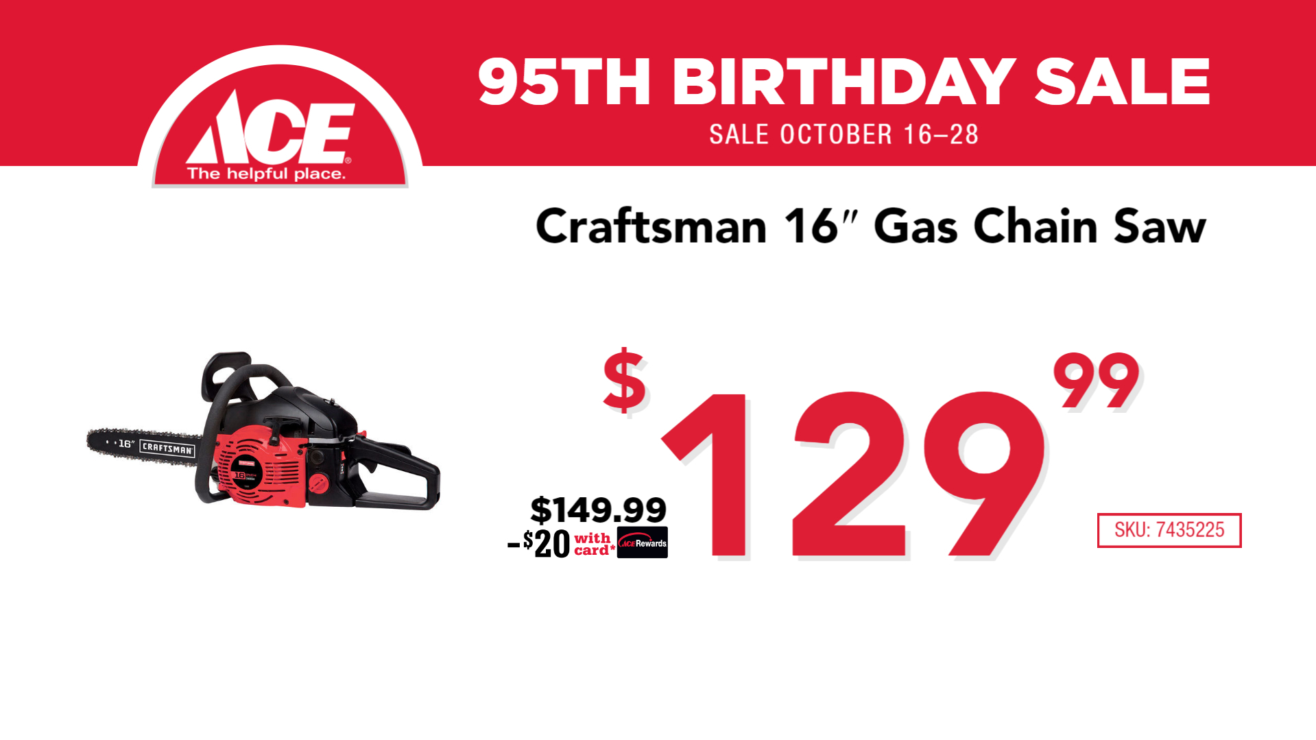 October 23, 2019Ace Hardware Storeace hardware, Ace Hardware's 95th Birthday Sale, Charlevoix, Charlevoix Ace Hardware, Salechxacehardware Share this: Share on X (Opens in new window) X Share on Facebook (Opens in new window) Facebook Related